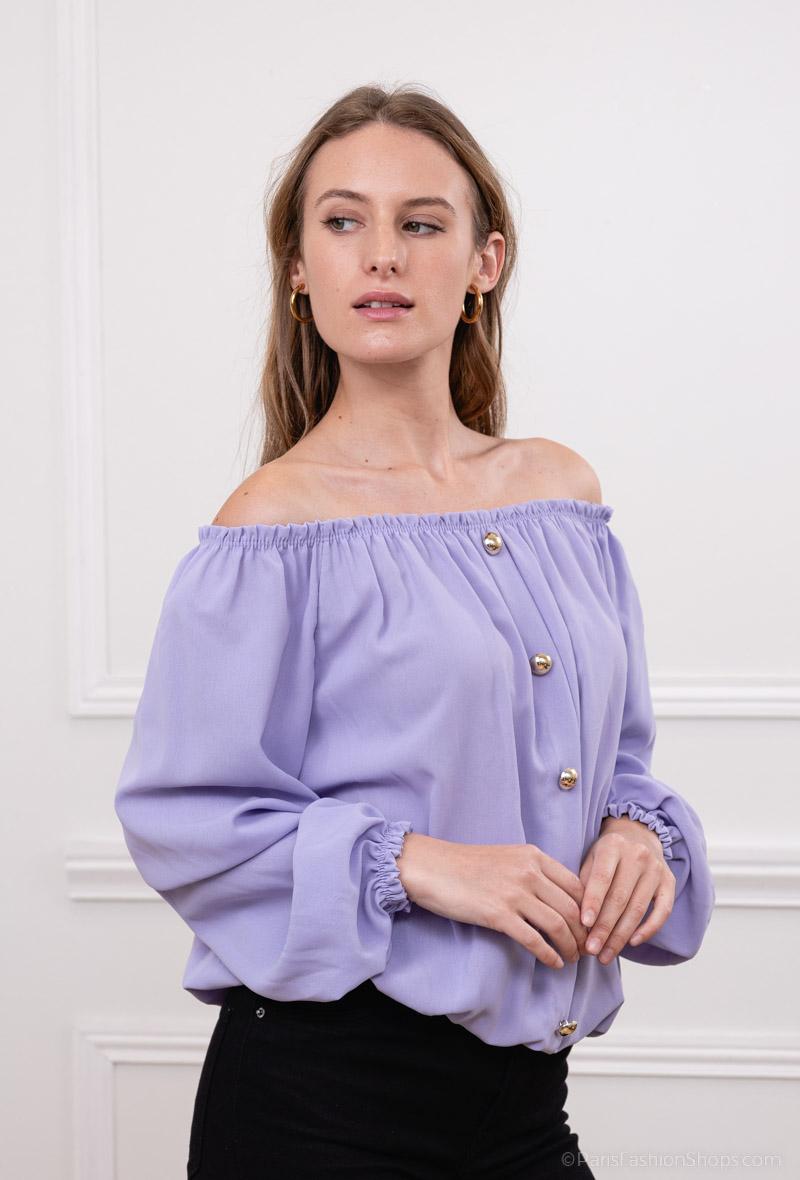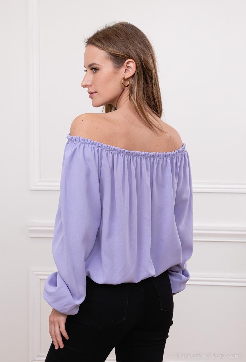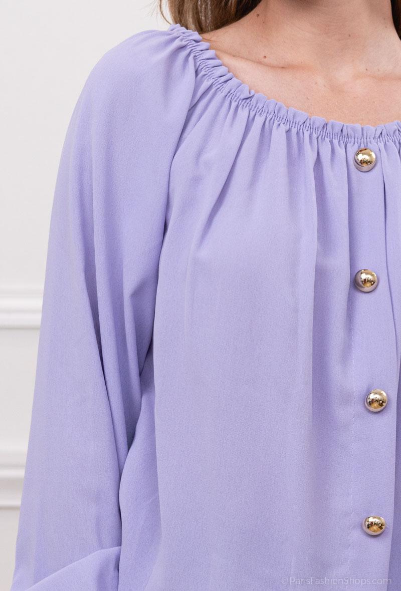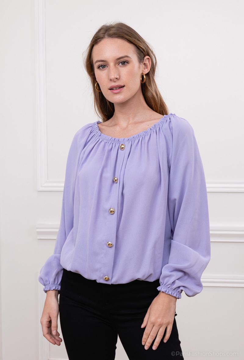 Blouse fluide à manches longues. Élastique aux niveaux de la taille, des épaules et des poignets.