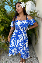 Robe Mi-Longue Fleurie Bleu