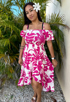 Robe off-shoulder, à bretelles réglables. Élastique à la taille.