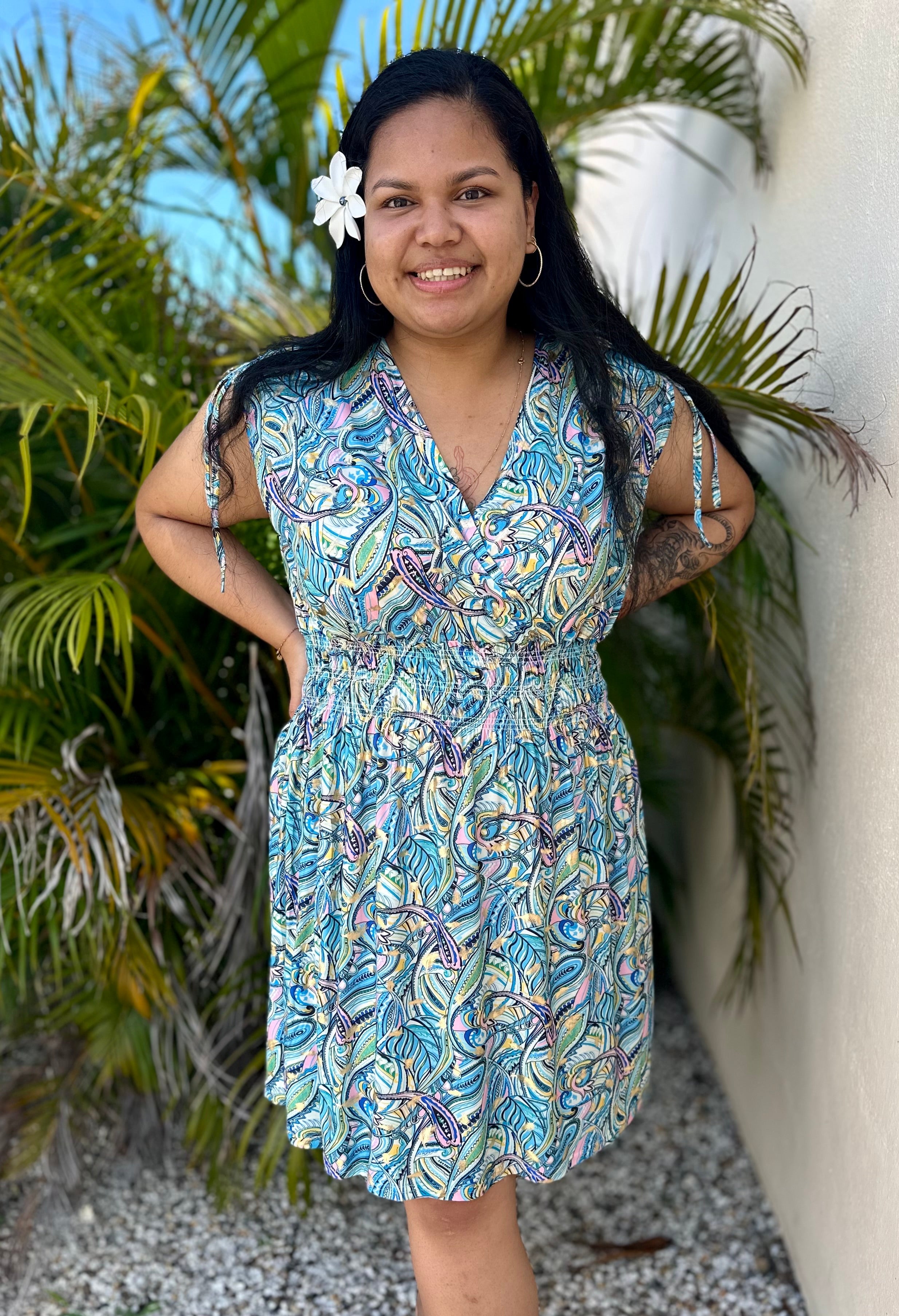 Robe fluide, sans manches, avec un col en V. Élastique à la taille.