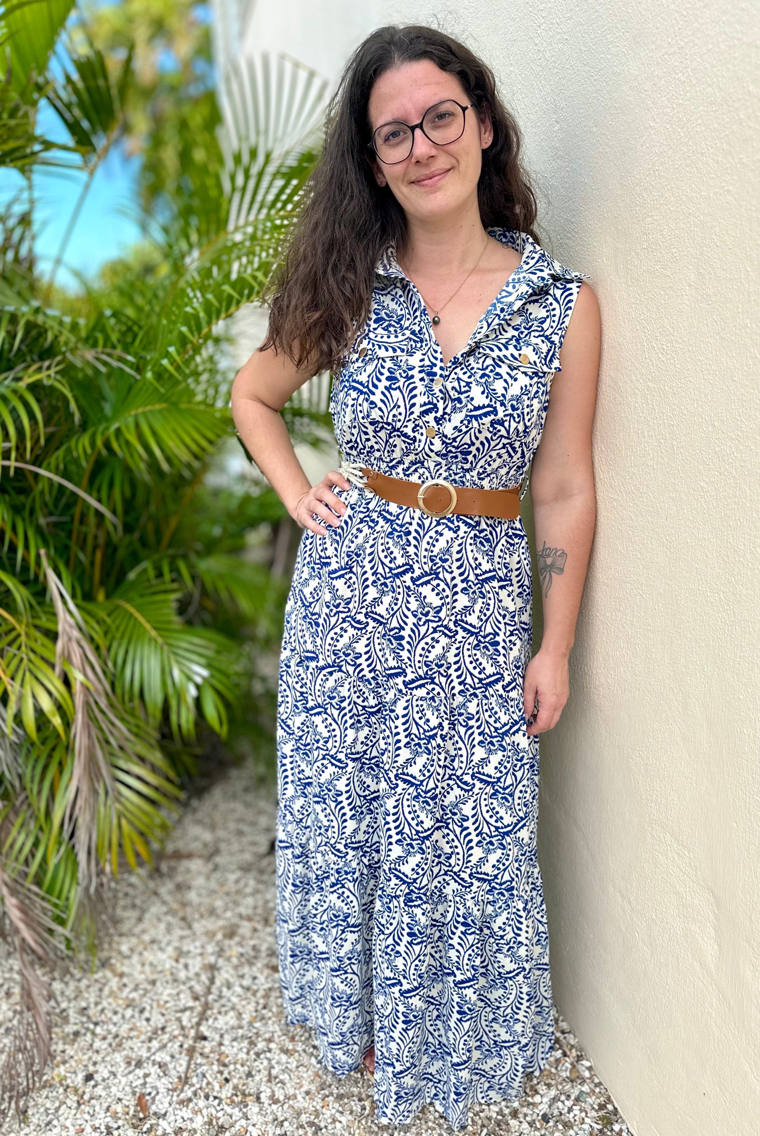 Robe longue sans manches. Élastique à la taille.