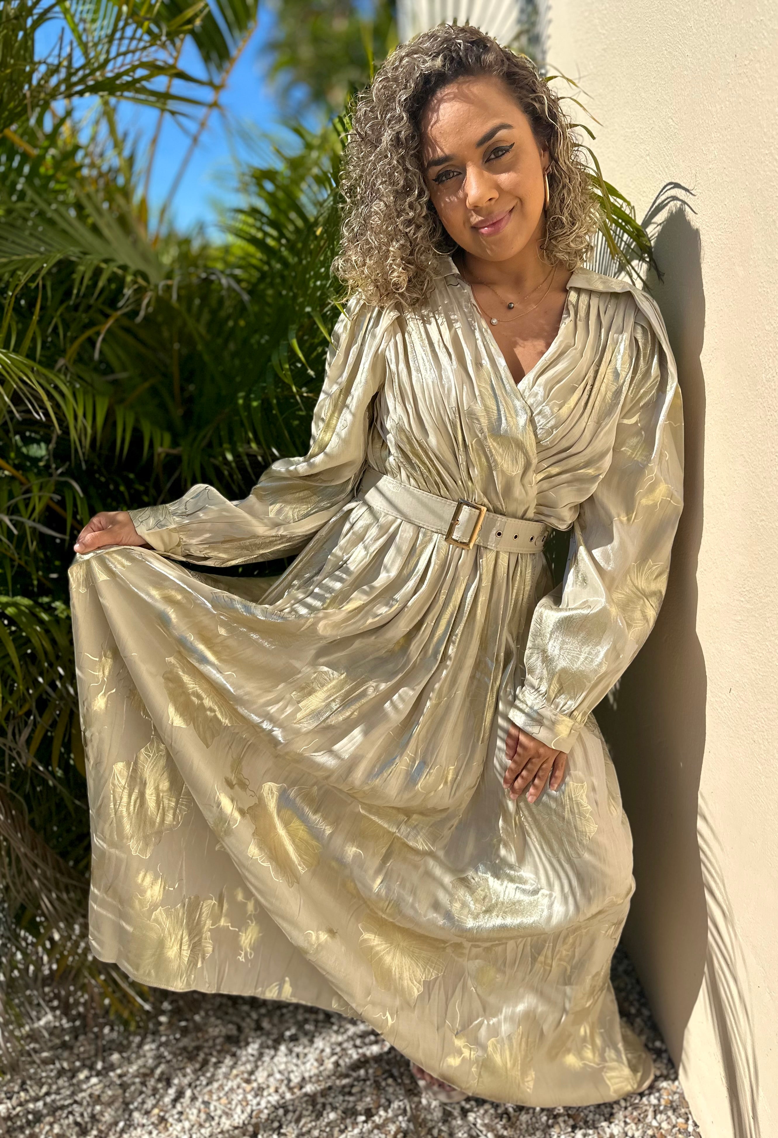 Robe Longue Fleurie Beige