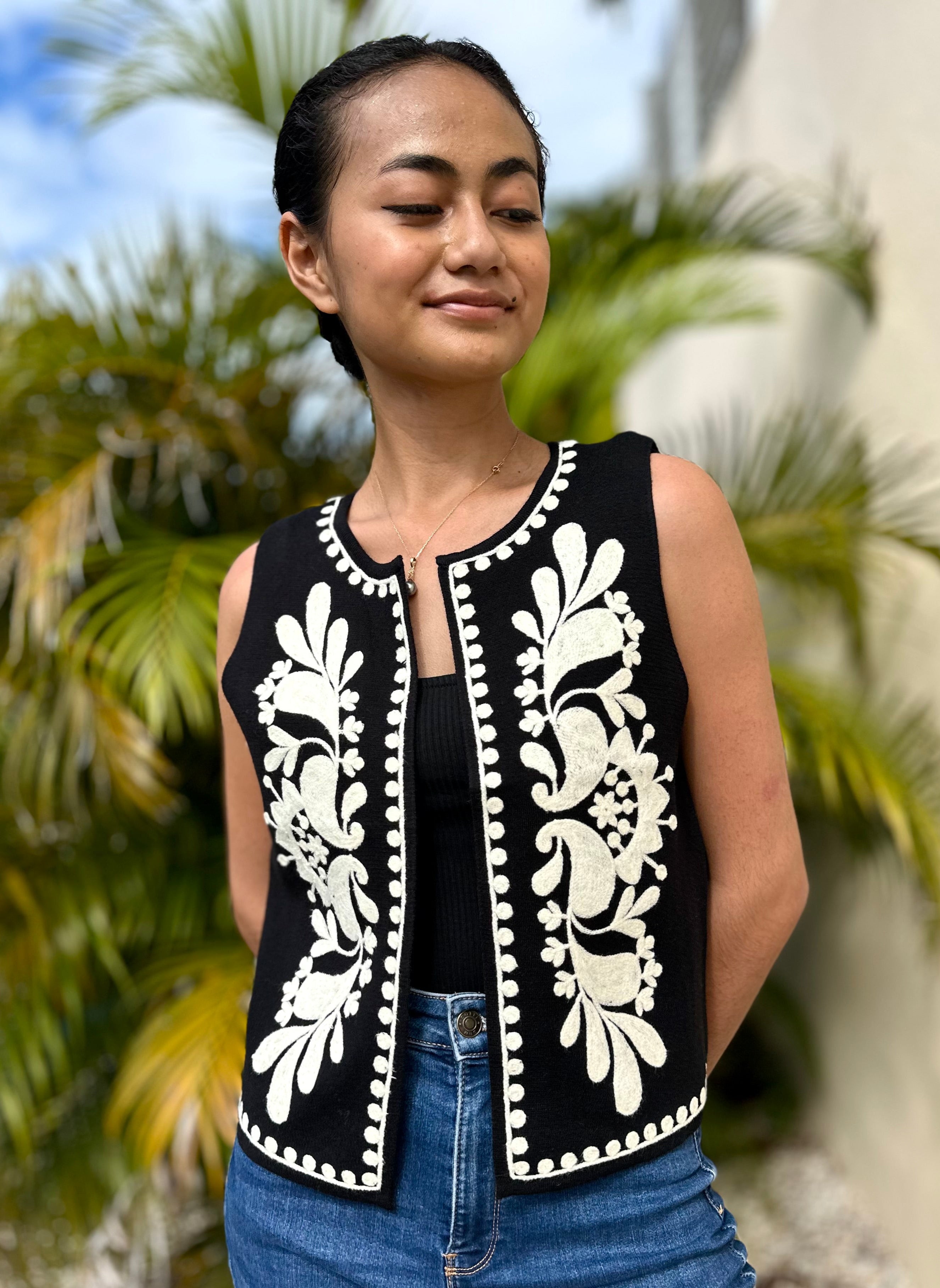Gilet sans manches, à motifs brodés