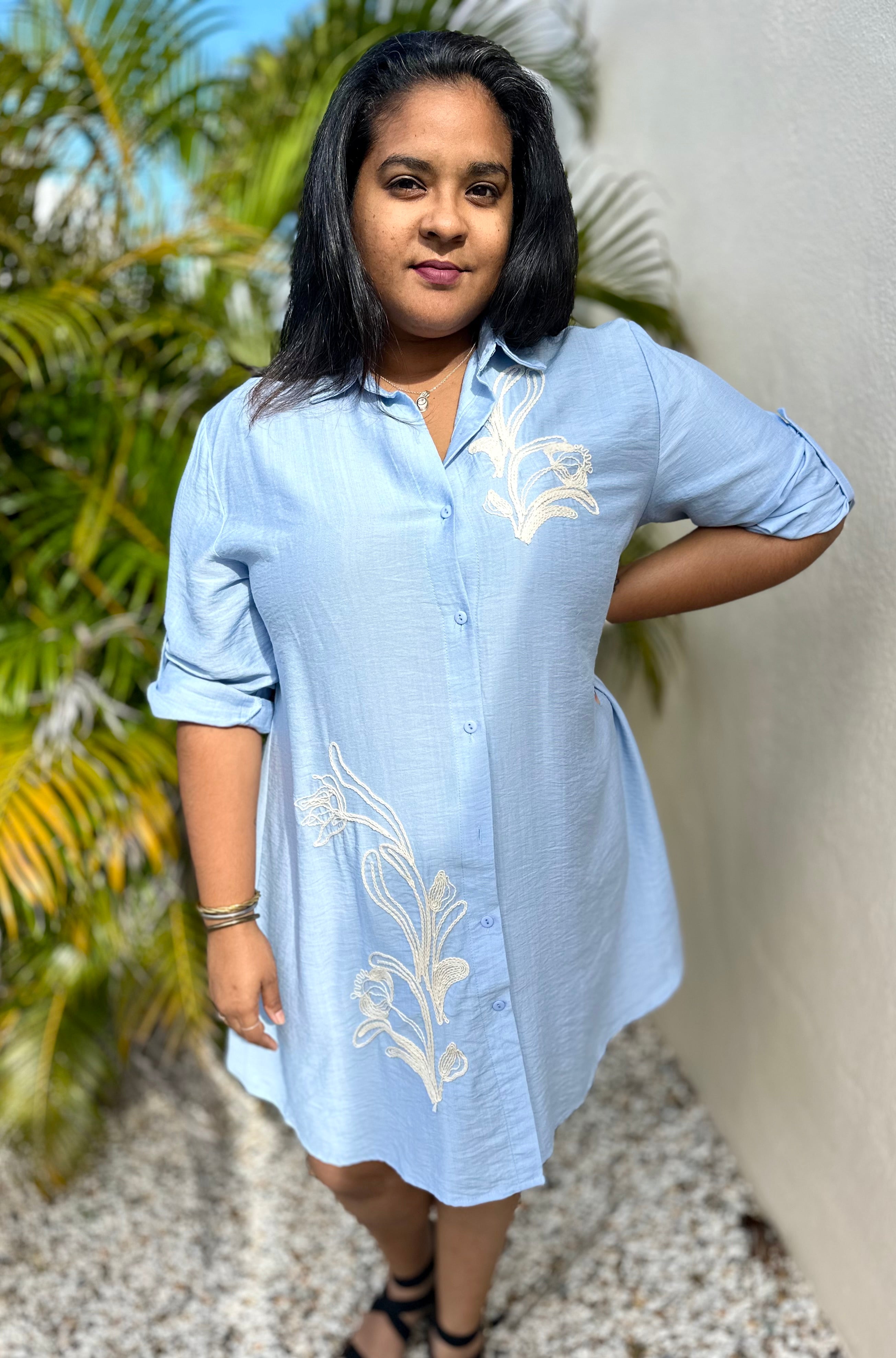 Robe Ample Broderie Bleu