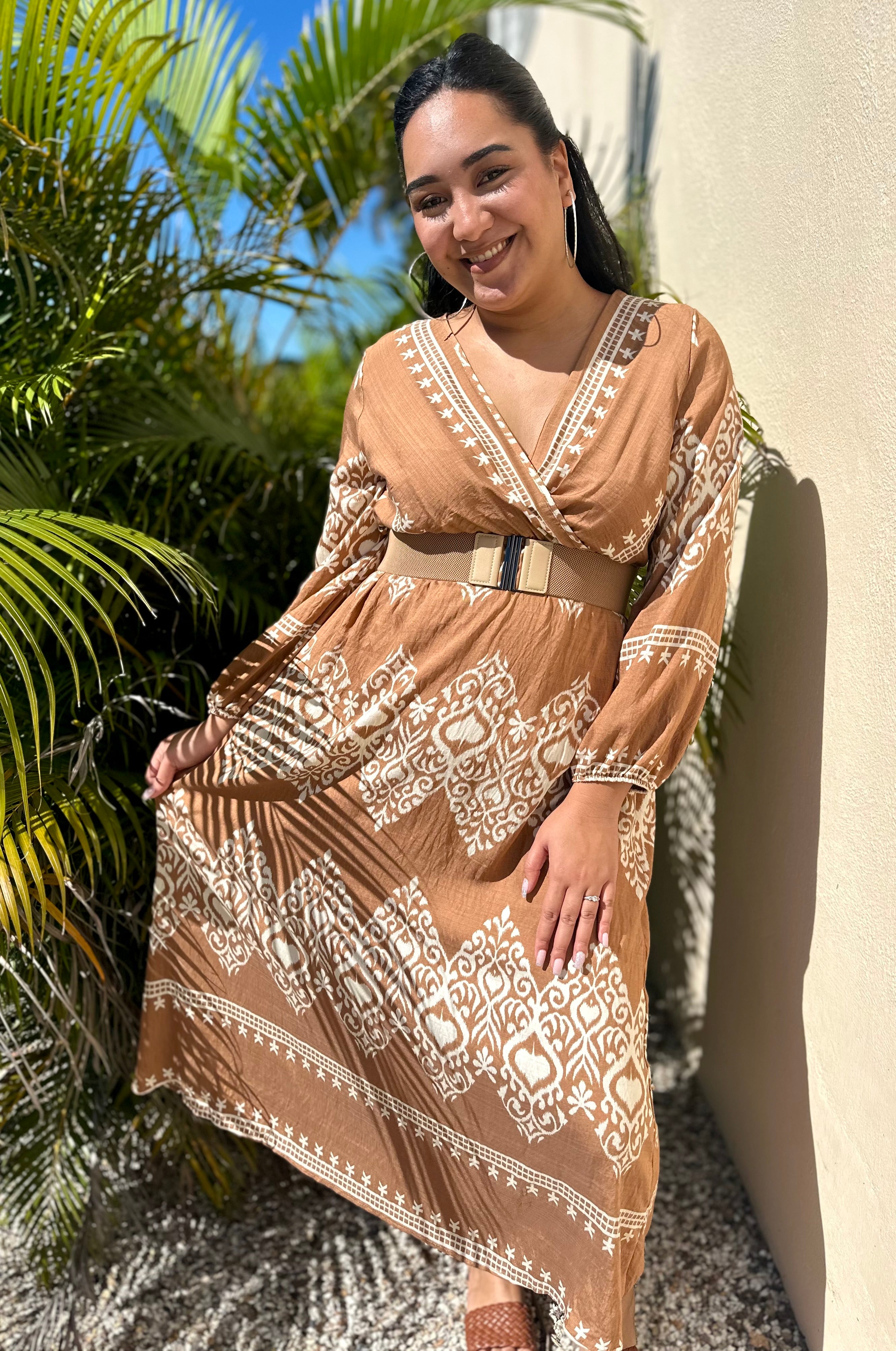 Robe Longue À Motifs Camel