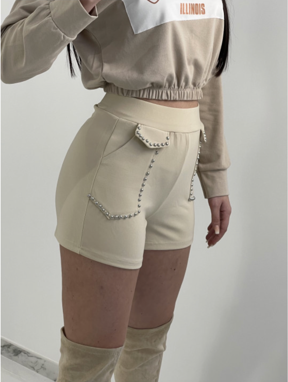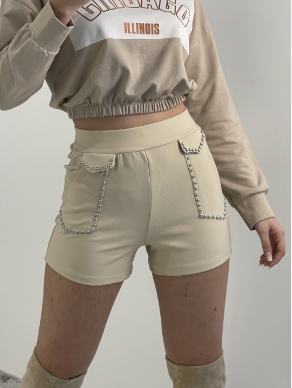 Short taille haute à clous, avec un tissus stretch très confortable.